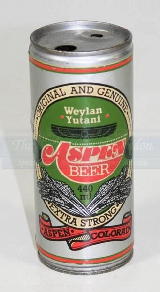 Aspen Beer was a brand of beer produced by the Weyland-Yutani Corporation in the 22nd century. Brewed in Aspen, Colorado, it was marketed as an "original and genuine extra strong beer".[1] Aspen Beer was the beer of choice throughout the frontier, although it was thought to be watered down and was generally thought to taste like piss. It was considered to be better than Souta Dry.[2] Aspen Beer was served in 6"-tall 440ml push button cans.[1]