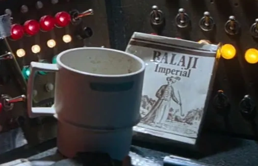 The name of the cigarettes is a reference to Bolaji Badejo, the actor who played the alien in the film. "Balaji" is a combination of "Ba", from his last name, and "laji", from his first name. According to Ivor Powell, Alien's associate producer: "Given that Balaji is the Christian name of the guy that played the Alien, I reckon that it could be a kind of in-joke between Art dept and Ridley [Scott]. However, it looks like a close-up/insert shot and I wonder when it was shot, because I only discovered Balaji during the main unit shooting and given that we shot the command module/cockpit sequences right at the beginning of the main unit schedule – then nobody would have heard of Balaji at that point. Maybe we shot this insert after main unit shooting had finished – but I don’t remember doing it."[2] According to Ridley Scott, Alien's director, "In the cockpit, there’s a pack of cigarettes that says ‘Bolaji.’"[3]