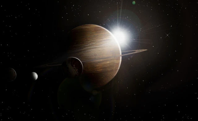 Calpamos possesses rings, much like the planet Saturn; these rings are thought to be the remains of a disintegrated moon that was broken apart by the gravitational shift induced when Acheron (LV-426) was captured by Calpamos' orbit, some 40 million years ago.[3] The planet's coloration is somewhat mixed, in some parts is light brown and in others a darker brown. It has three small moons, including Acheron, where a derelict Engineer ship was located, and LV-223, which was the site of a major Engineer facility.